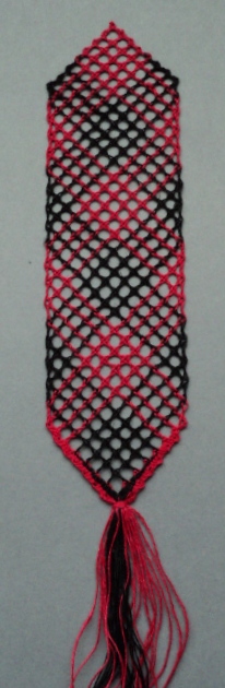 Nyplätty kahdella värillä pellavalangasta. Koko on 4 x 14 cm. Nyplätty osa on tärkätty. Toimitus 1-3 vrk.