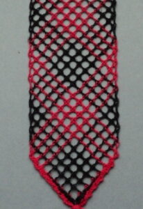 Nyplätty pellavalangasta, nyplätty osa tärkätty. Koko 5 x 17,5 cm. Toimitus 1-2 vrk.